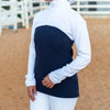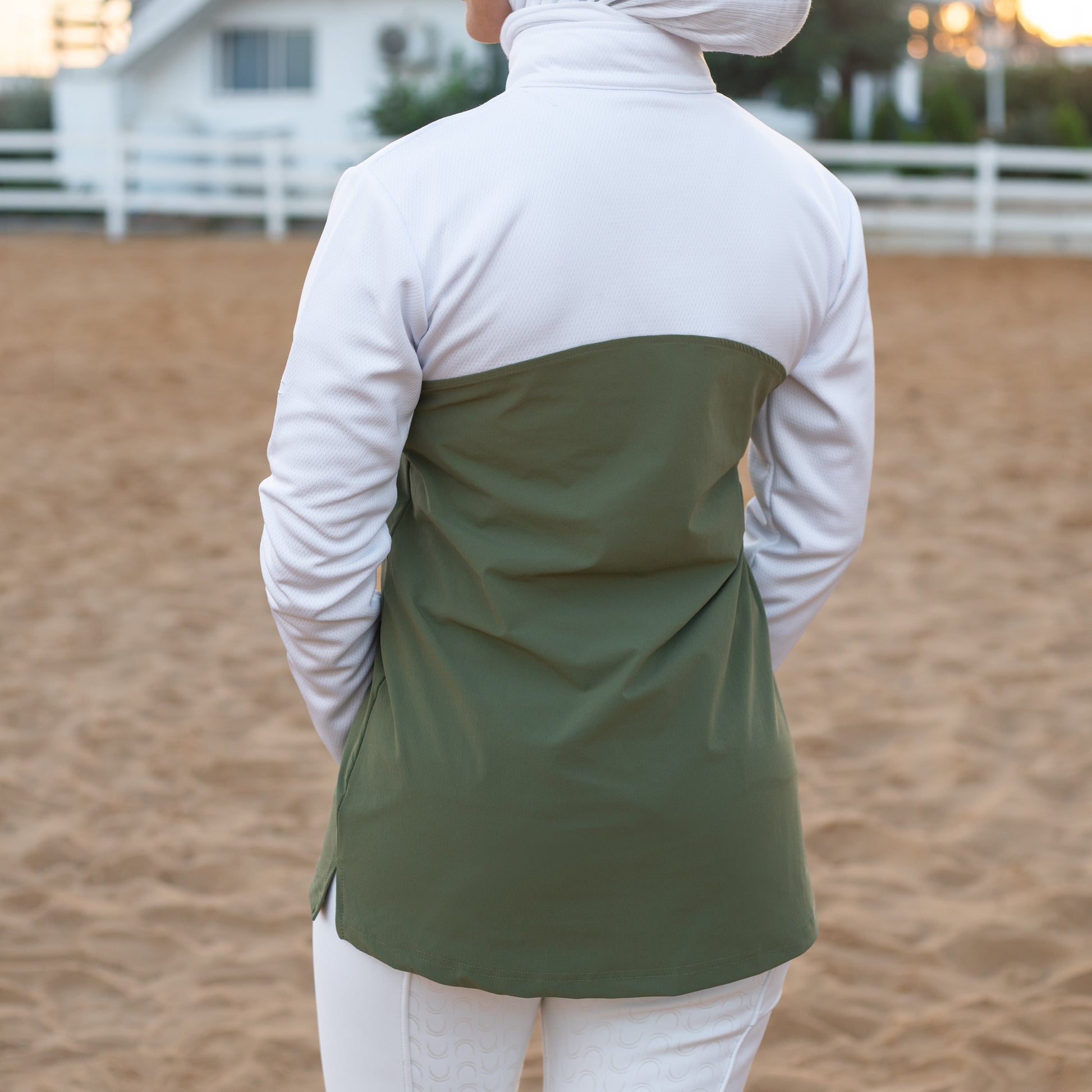 The feminine yet modest design provides an exceptionally comfortable fit, while the tailored sleeves and collar ensure complete freedom of movement for the rider. This shirt goes beyond the classic half-and-half cut, featuring expert craftsmanship that effectively prevents sweat stains from showing.